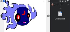 The basis for the project was a crude drawing of a ball-shaped creature surrounded by flames, which Cyraxx claims he had made out of boredom in 2012. From there on, Cyraxx made copious use of artificial intelligence programs to generate a more refined version of the drawing, as well as more "creatures" and promotional images. Not only was Cyraxx churning AI slop expecting fame and fortune, but it was later discovered that the old drawing was actually stolen from Heather Krout's Facebook profile[2]; a true testament to the bottomless abyss that is Cyraxx's lack of creativity.