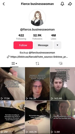 In 2024, it was discovered that Samantha was running a TikTok named fierce.businesswoman". On this TikTok account, she uploaded multiple videos where she is seen manipulating mentally disabled men into giving her money, as well as performing embarrassing and degrading acts for her on camera. Most of her victims were from Discord or the dating app Bumble. These videos show that even after leaving Daniel, she hasn't changed very much. | In 2024, it was discovered that Samantha was running a TikTok named fierce.businesswoman". On this TikTok account, she uploaded multiple videos where she is seen manipulating mentally disabled men into giving her money, as well as performing embarrassing and degrading acts for her on camera. Most of her victims were from Discord or the dating app Bumble. These videos show that even after leaving Daniel, she hasn't changed very much. | ||