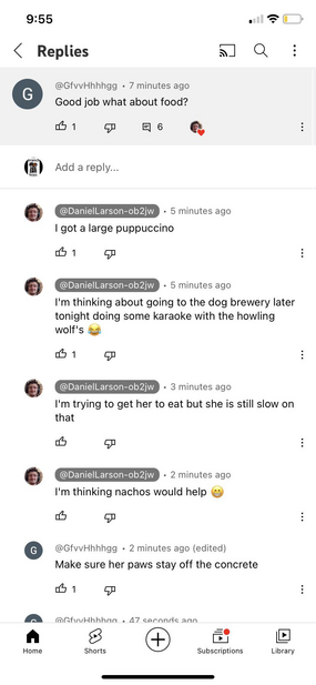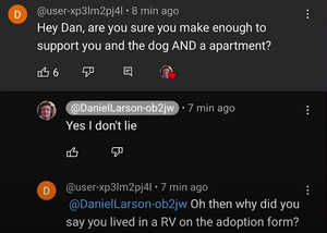 - ↑ https://www.reddit.com/r/Daniellarson/comments/14vgw54/dms_with_dog_video_guy/